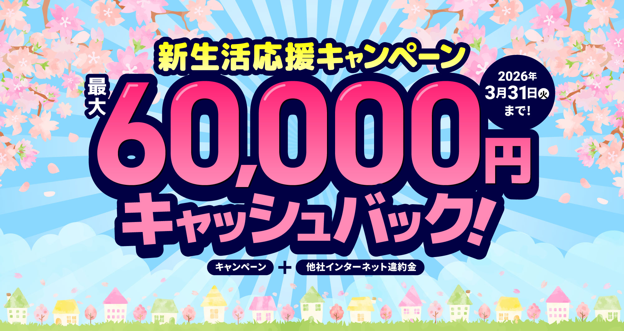 新生活応援キャンペーン最大60,000円キャッシュバック!2026年3月31日(火)まで!